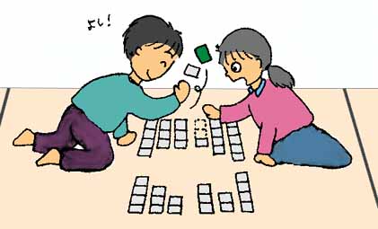 送られた方は、自陣の好きな所へその札を並べます 送り札は相手の方へ向けてていねいに送りましょう。 |